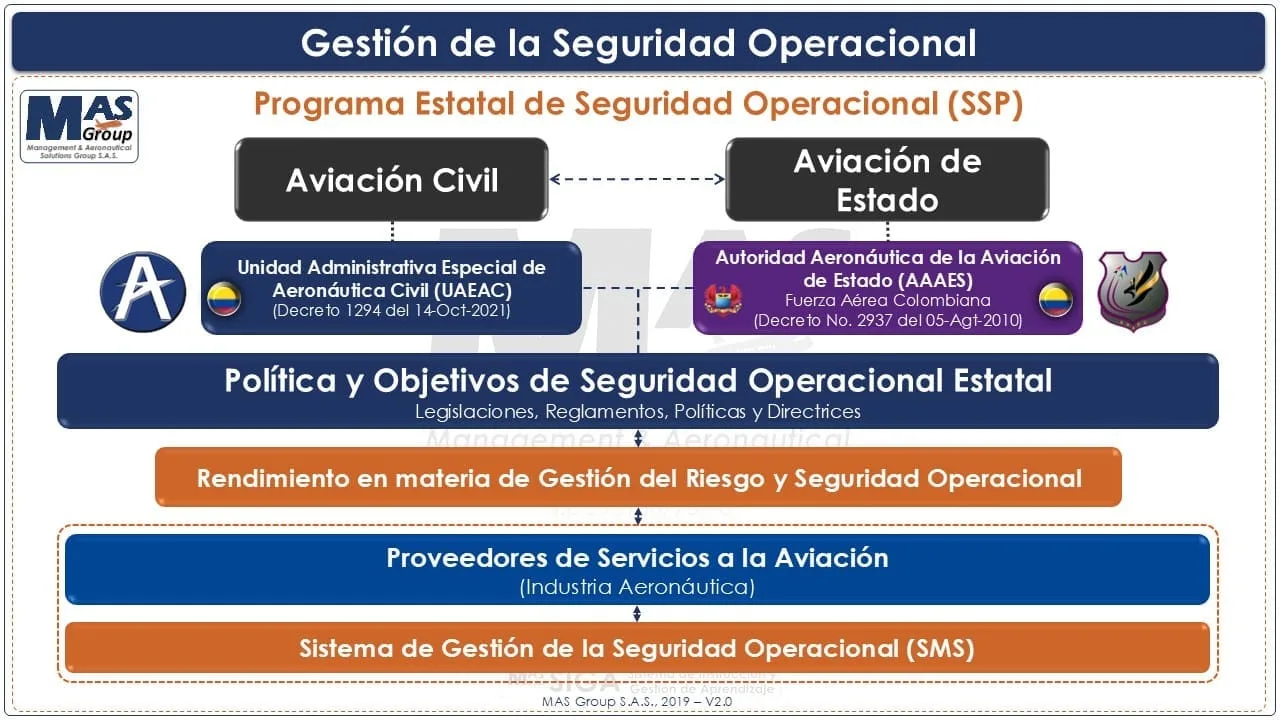 La Gestión Aeronáutica es clave para la Seguridad Operacional y hace referencia al “Conjunto de actividades y operaciones reguladas y estandarizadas para liderar, planear, desarrollar, controlar, garantizar, vigilar y promover el mejoramiento continuo de personas y organizaciones directa o indirectamente relacionados con el empleo de aeronaves, y conducentes al logro de objetivos de Seguridad Operacional”.