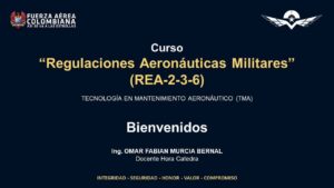 El Ing. OMAR FABIAN MURCIA BERNAL dicta del 12 de julio al 26 de agosto de 2021 el Curso de “Reglamentación Aeronáutica Militar” al personal de la Tecnología de Electrónica Aeronáutica (TEA) de la “Escuela de Suboficiales CT. Andrés M. Díaz – ESUFA” (https://www.fac.mil.co/esufa) (Institución de Educación Superior – IES) de la Fuerza Aérea Colombiana (FAC). De acuerdo a lo establecido en los Programas Académicos de esta IES, los futuros Tecnólogos en Electrónica Aeronáutica (TEA), deben adquirir en conocimiento necesario para desempeñarse en los procesos de mantenimiento de primer nivel de los sistemas eléctricos y electrónicos en aeronaves tripuladas y no tripuladas a disposición de la FAC. Por tal motivo, se hizo necesario el desarrollo de información y conocimiento relacionado con en el manejo y uso de los documentos de gestión de la institución, así como de manuales, publicaciones técnicas, órdenes técnicas, boletines y formularios utilizados para el desarrollo de mantenimiento de las aeronaves de la institución, fortaleciendo con esto que las actividades se desarrollen dentro de niveles aceptables de Seguridad Operacional. El Ing. OMAR FABIAN MURCIA BERNAL agradece la confianza y el apoyo dado por parte de los Directivos y Jefes de Programa para que este proceso se desarrollara de manera satisfactoria y a conformidad con los lineamientos de esta IES.